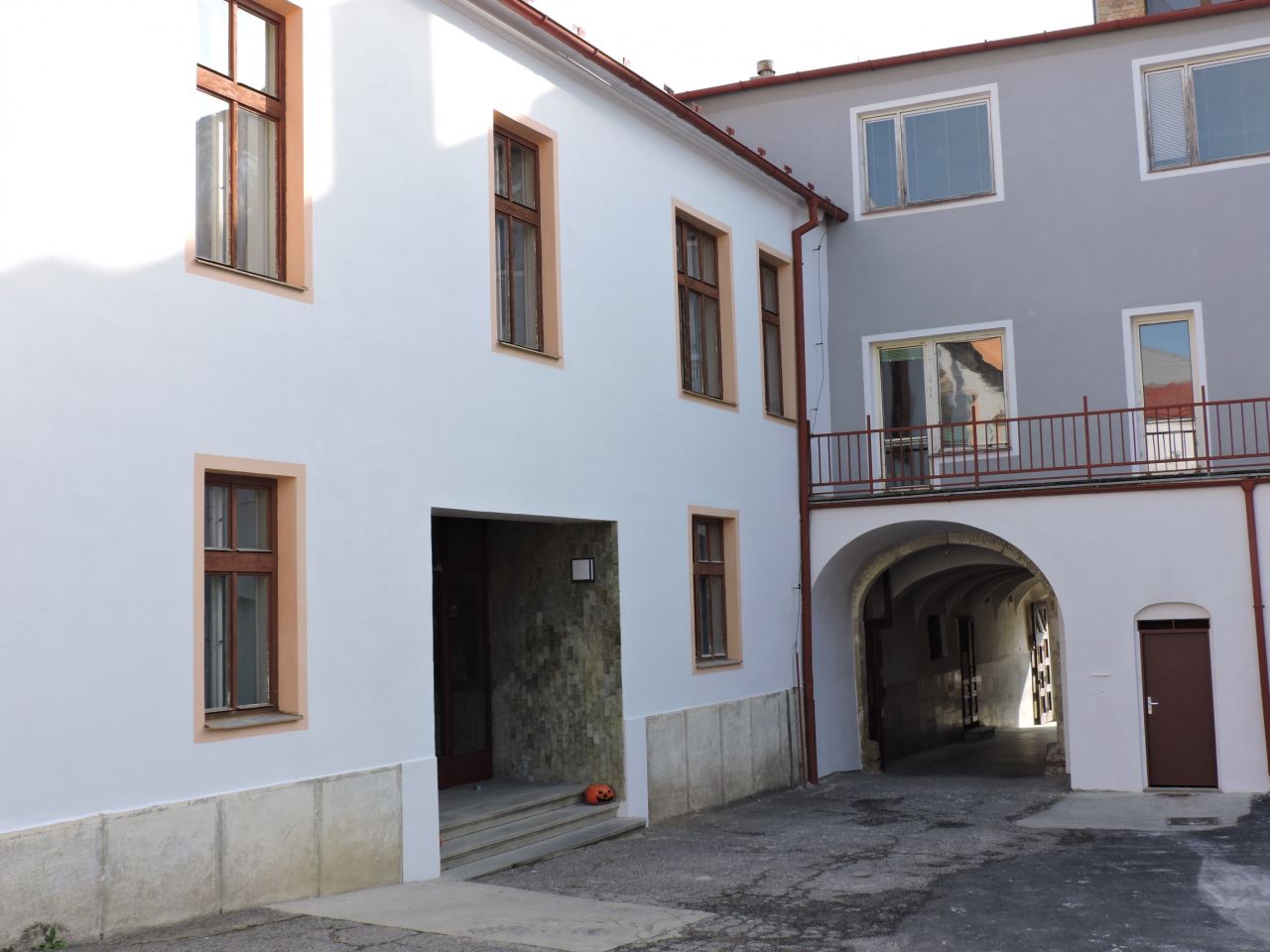 nádvoří Kulturního domu Beseda s pohledem na hlavní vstup do budovy